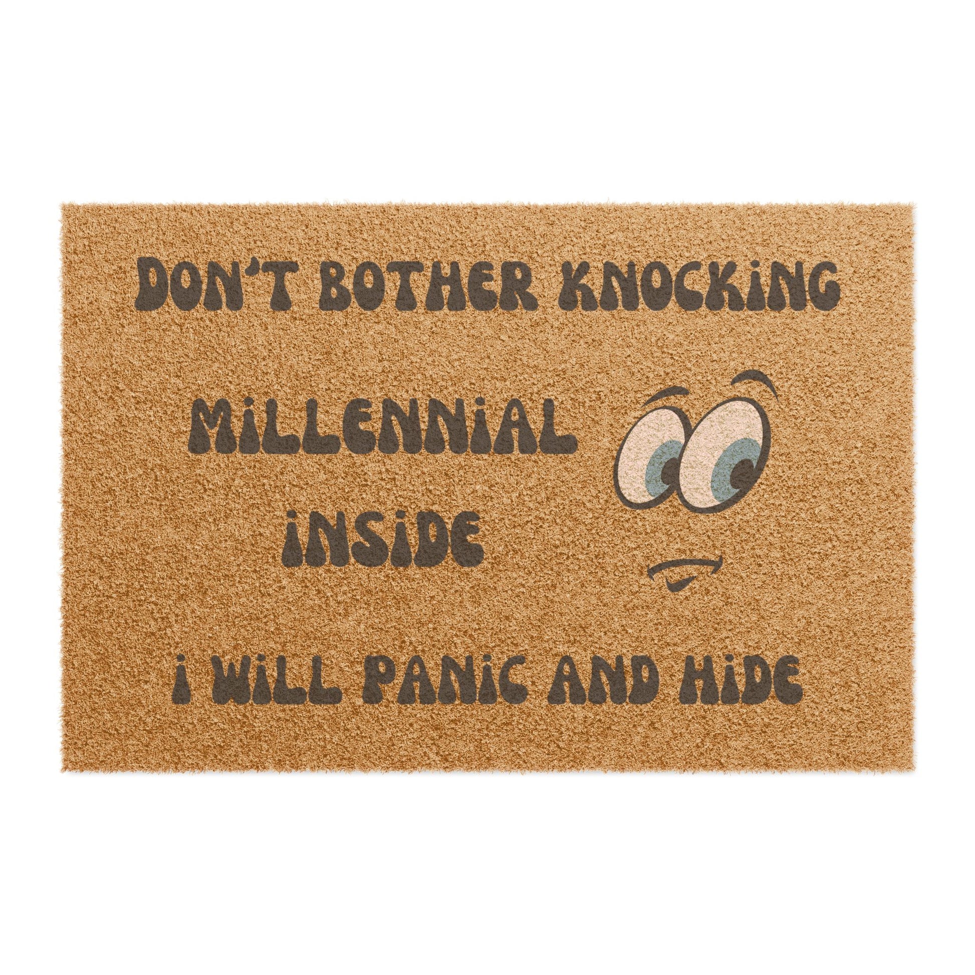 Funny Millennial Doormat – “Don’t Bother Knocking, Millennial Inside” Outdoor Welcome Mat