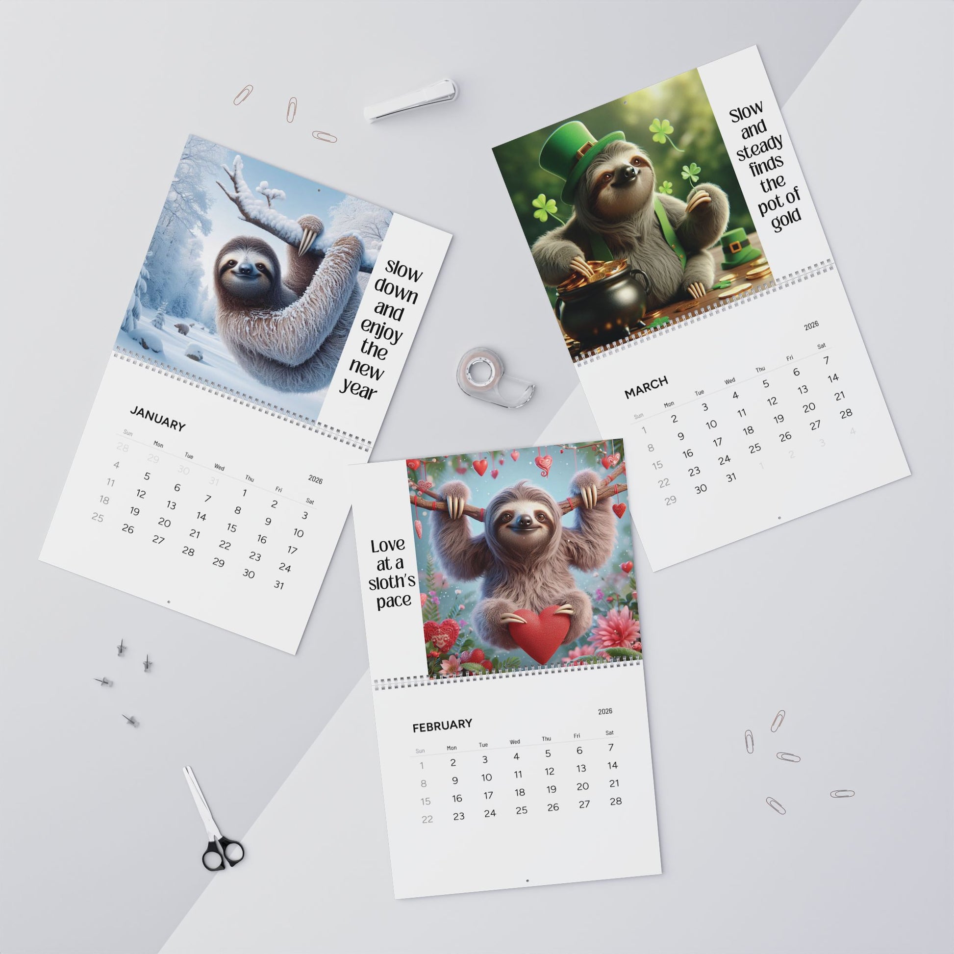 Each month features playful sloth illustrations bursting with vibrant color, bringing warmth and positivity to your space. Printed on premium thick paper with high-quality finishes, this calendar not only looks amazing—it’s built for everyday use. The matte grid pages make writing smooth and smudge-free, while the sturdy wire coil and hanging hole ensure easy display and effortless page turning.